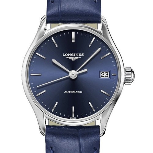 预订1-2周LONGINES浪琴 律雅系男女蓝表盘蓝皮革精钢自动腕表25mmL43604922(新品手表)