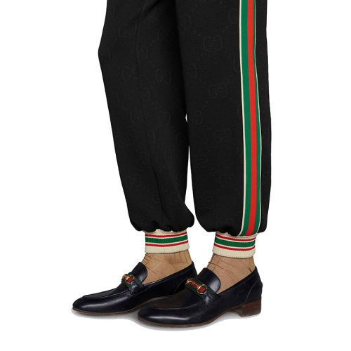 【服装】GUCCI/古驰 男士黑色GG提花平纹针织运动裤663569XJDE91043