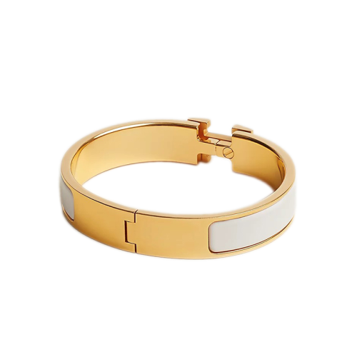 HERMES/爱马仕 Clic H系列 白色珐琅镀金饰面金属细手镯 H700001F31PM(新品首饰 )