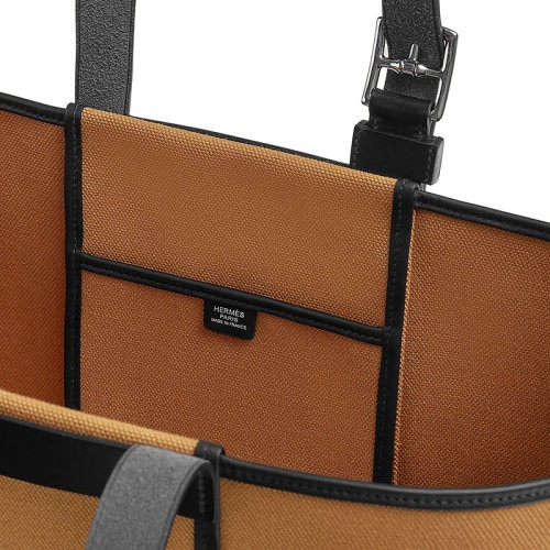 【新品包包】HERMES/爱马仕24新款 男士棕黑混色帆布配牛皮按扣手提包H082624CKAF