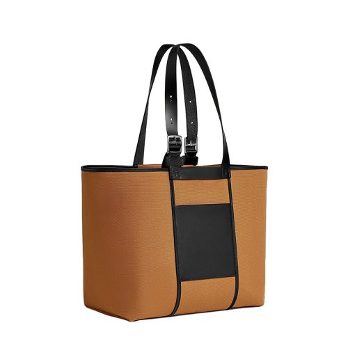 【包税】HERMES/爱马仕24新款 男士棕黑混色帆布配牛皮单肩手提包H082768CKAD